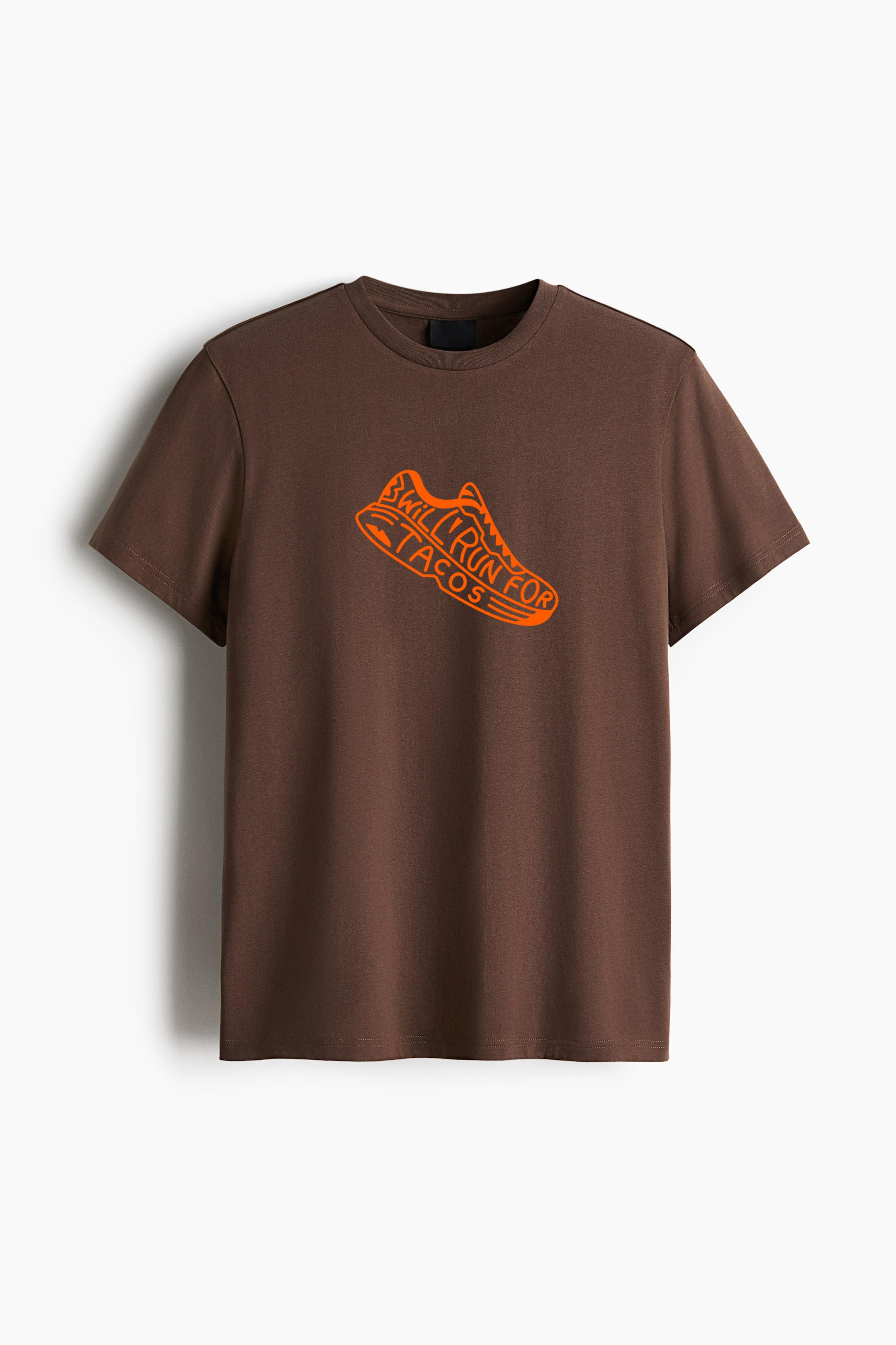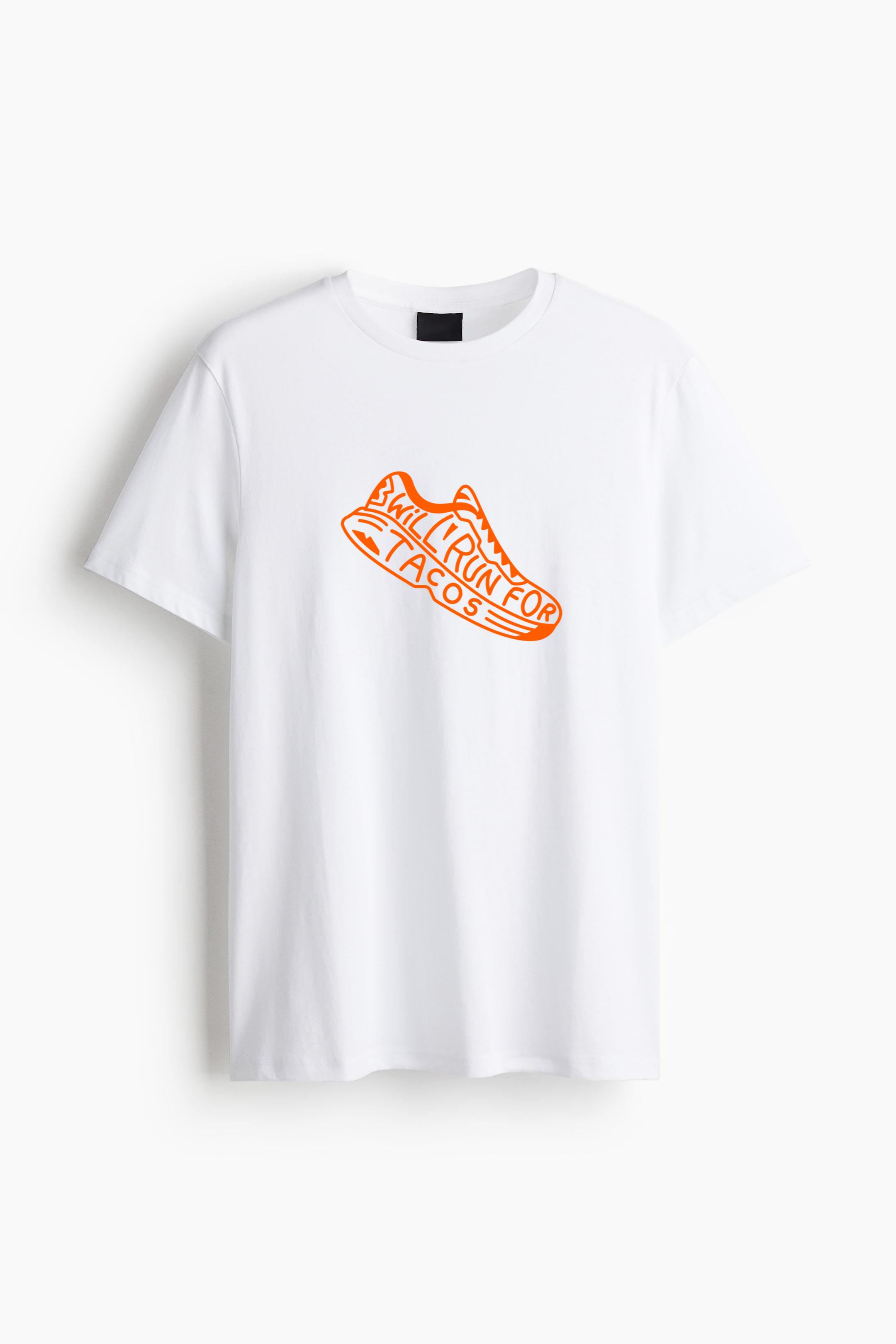 Run For Tacos Shoe Quote Cotton T-Shirt Cotton T-Shirt – Straight-Cut Soft Cotton Jersey Tee with Ribbed Crew Neck and Dropped Shoulders